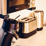 Pokoje jsou vybaveny pohovkou, pracovním stolem, přístrojem na přípravu kávy a čaje, stejně jako kompletní kuchyní s mikrovlnnou troubou, rychlovarnou konvicí a chladničkou. Tento pokoj také má kobercovou podlahu a koupelnu s samostatnou toaletou a sprchou. Apartmán Die Praxis - Wohnen Als Therapie má 1 ložnic. Zahrnuje 1 koupelen.